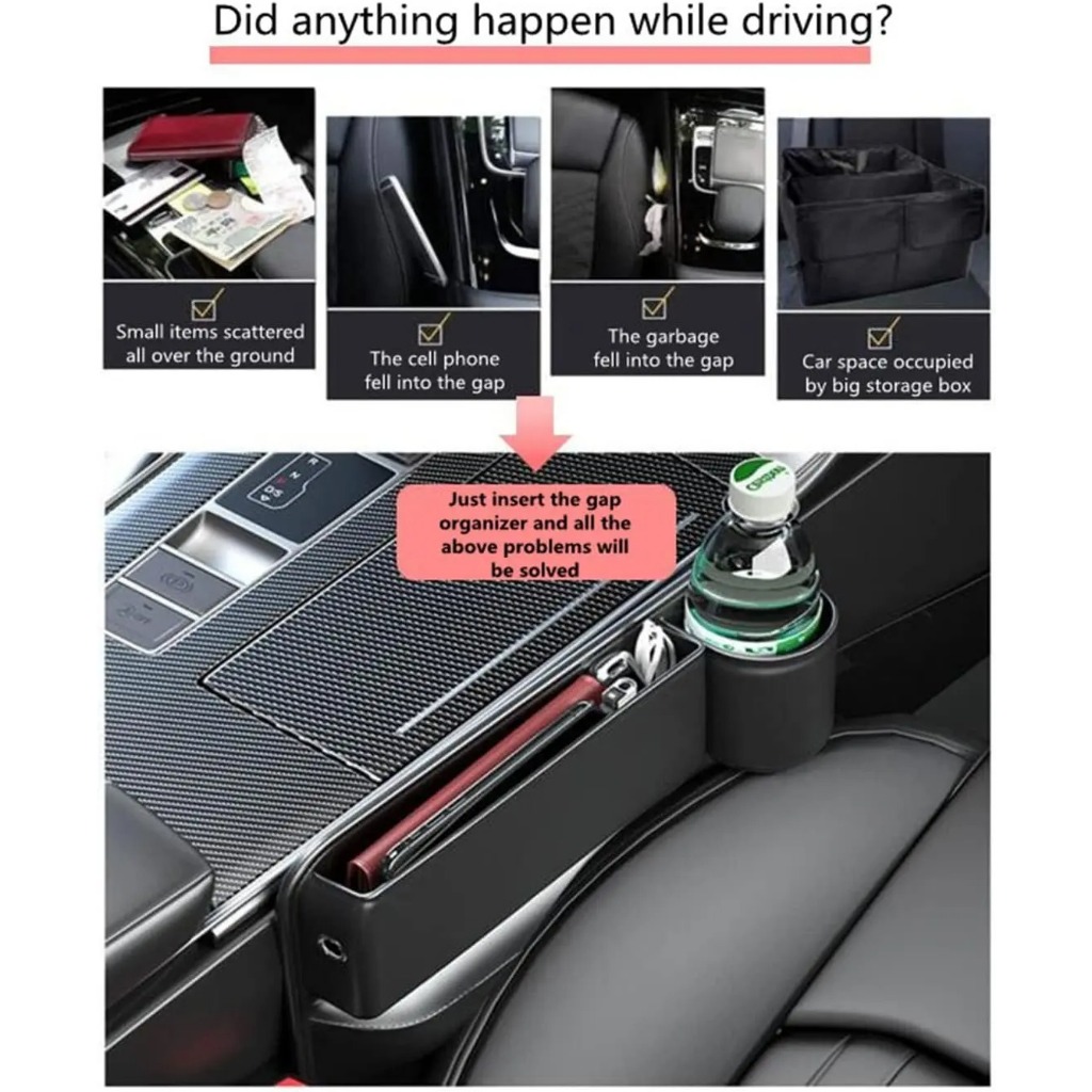 Pu Leather Car Seat Gap Organizer Auto Console Side Storage Box with Cup Holder Seat Crevice Storage Box for Cellphones