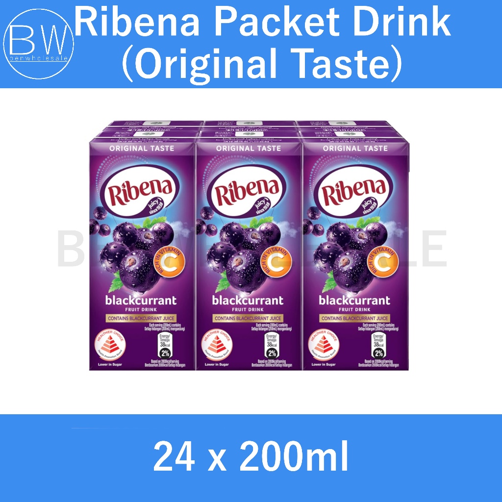 Ribena Blackcurrant Original Taste / Less Sugar (24 x 200ML) Carton