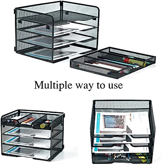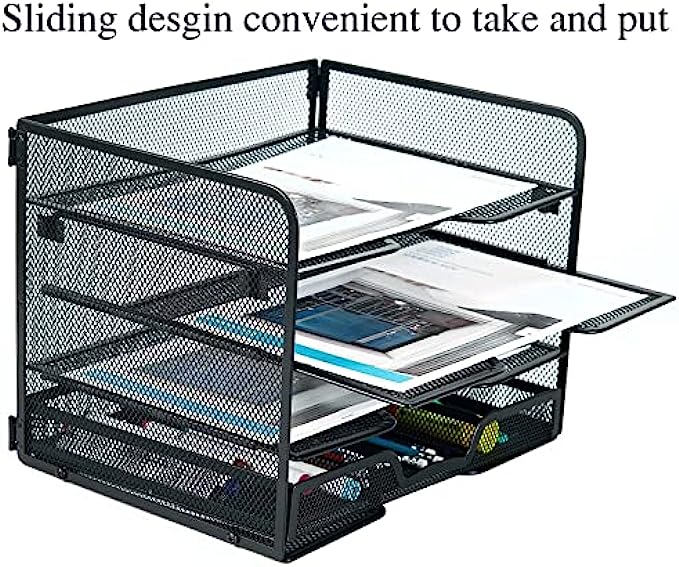 【Multifunctional Design】: The desk file organizer comes with a drawer tray. The drawer trays are used to store office stationery such as pens, pencils, glue sticks, staplers, etc.