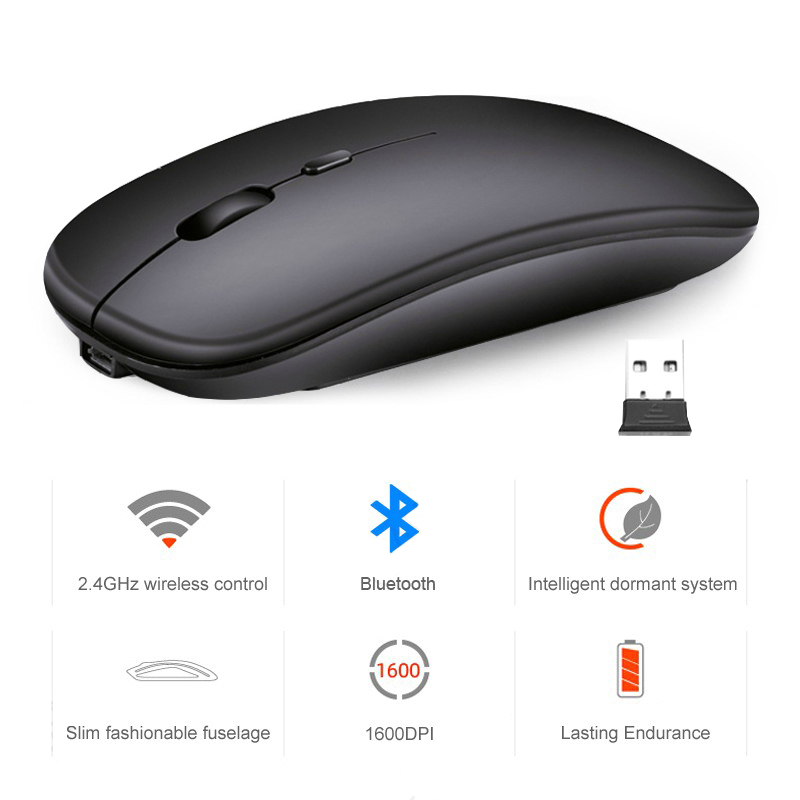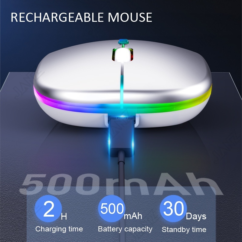 (SG STOCK) Wireless Mouse Rgb Led 2.4Ghz Silent Rechargeable 1600dpi Slim Portable With USB Receiver Computer PC Laptop