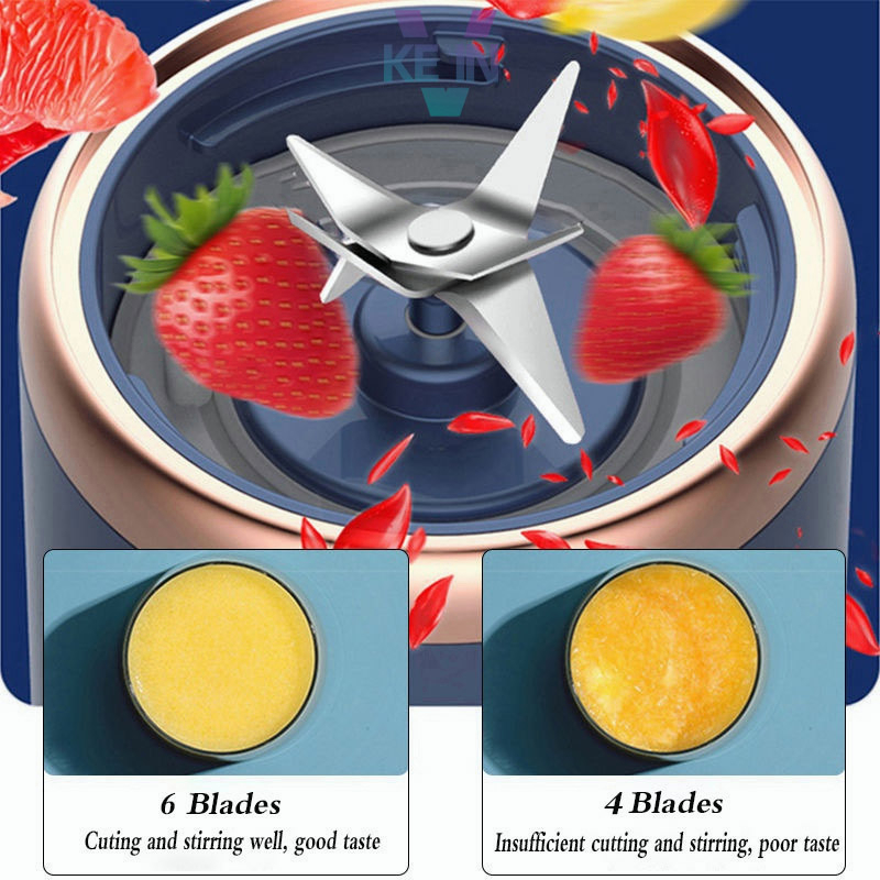 【SG】300ML 6 Blade Portable Juicer 2 Cups Blender Multi-function Automatic Small Electric Juicer Rechargeable