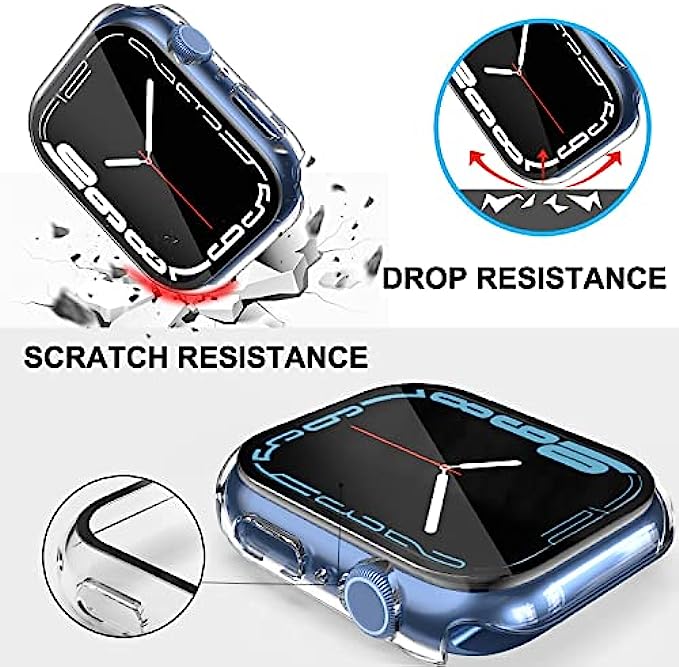• Overall protection: Designed for apple watch series 7 45mm screen protector is made with anti-scratch hard pc and tempered glass, offering full protection for your watch against scratches, drops, and bumps.