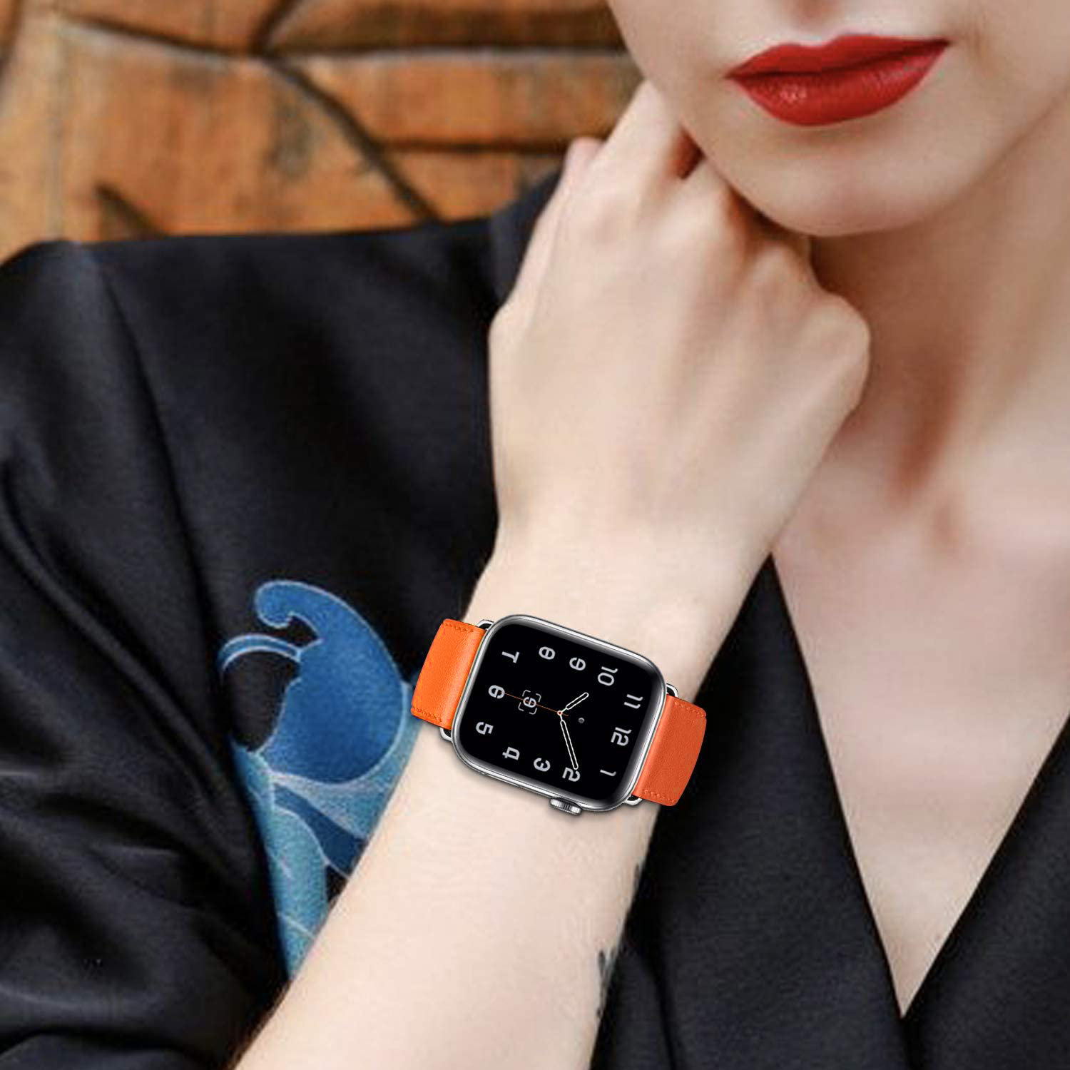 Solid Color Simple Top Leather Replacement Band compatible for Apple Watch 45mm/ 41mm /44mm/ 40mm Series 9/ 8/ 7/ 6/SE/ 5 /4 compatible foriWatch Bracelet Band