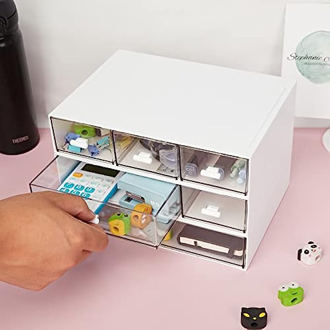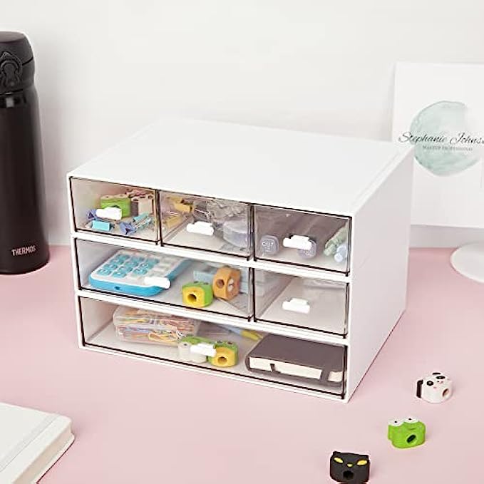 PERFECT SIZE - 8.8*6.5*1.7inch/22.5*16.5*4.3cm, elegant look, it fits easily in the desk. clear drawers design easy to see through and keep everything in order and easy to access