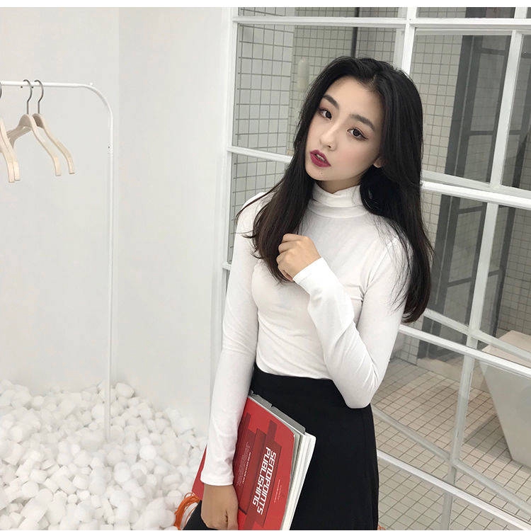 STOCK!!!Muslimah Turtleneck Inner Women Baju Blouse High Neck Long Sleeved Top Slim Office