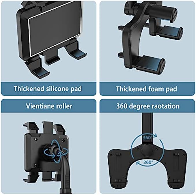 - 360-Please note: 1. The thickness of the rearview mirror is 3-6cm, and the height is 6-9cm; 2. If your rearview mirror is very close to the front windshield, it is not recommended that you buy it, otherwise it cannot be used in your car. degree rotation adjustment, you can always find the angle that suits you. - Thickened silicone pad, Vientiane roller, exquisite workmanship, light and durable. - Retractable and adjustable rods, which can be long or short, can be adjusted as needed, and can be retracted and hidden behind the rearview mirror, without affecting the vision of driving. - Driving navigation, live broadcast, video shooting, watch TV show, you can try it in any occasion where you need it.