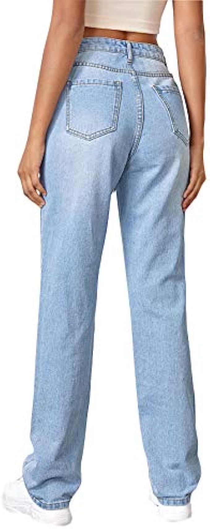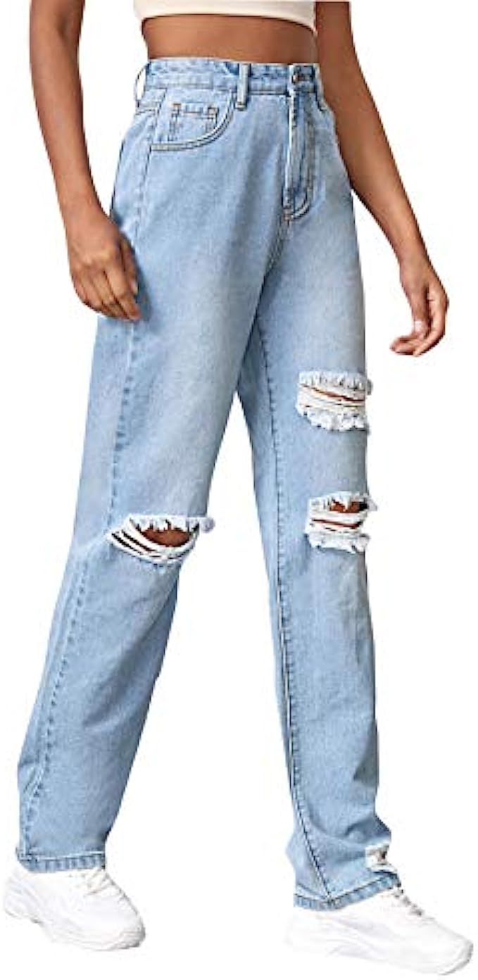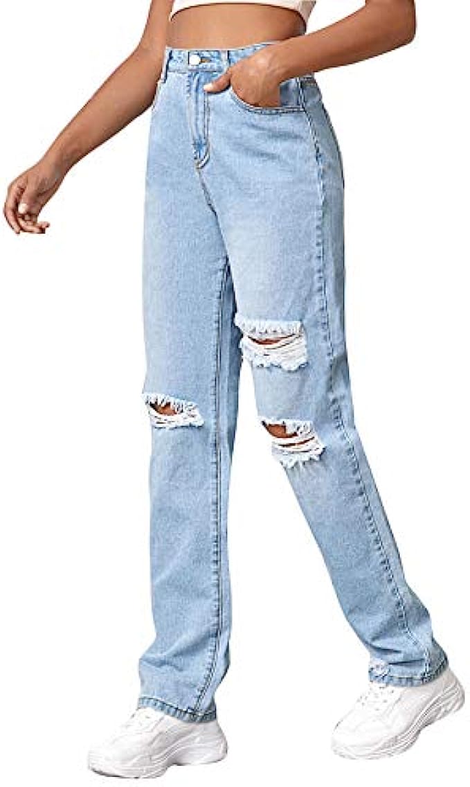 SweatyRocks Women's Ripped Straight Leg Jeans High Waist Distressed Cutout Denim Pants