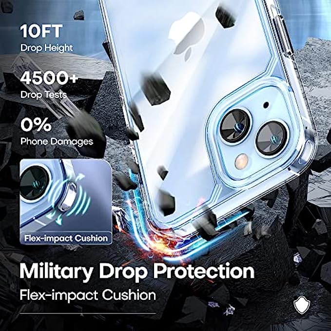 • 【Military-grade Protection】TAURI for iPhone 14 Case Clear is certified drop test, features 4 built-in corner Airbags to absorb impact, can prevent your Phone from accidental drops, bumps and scratches.