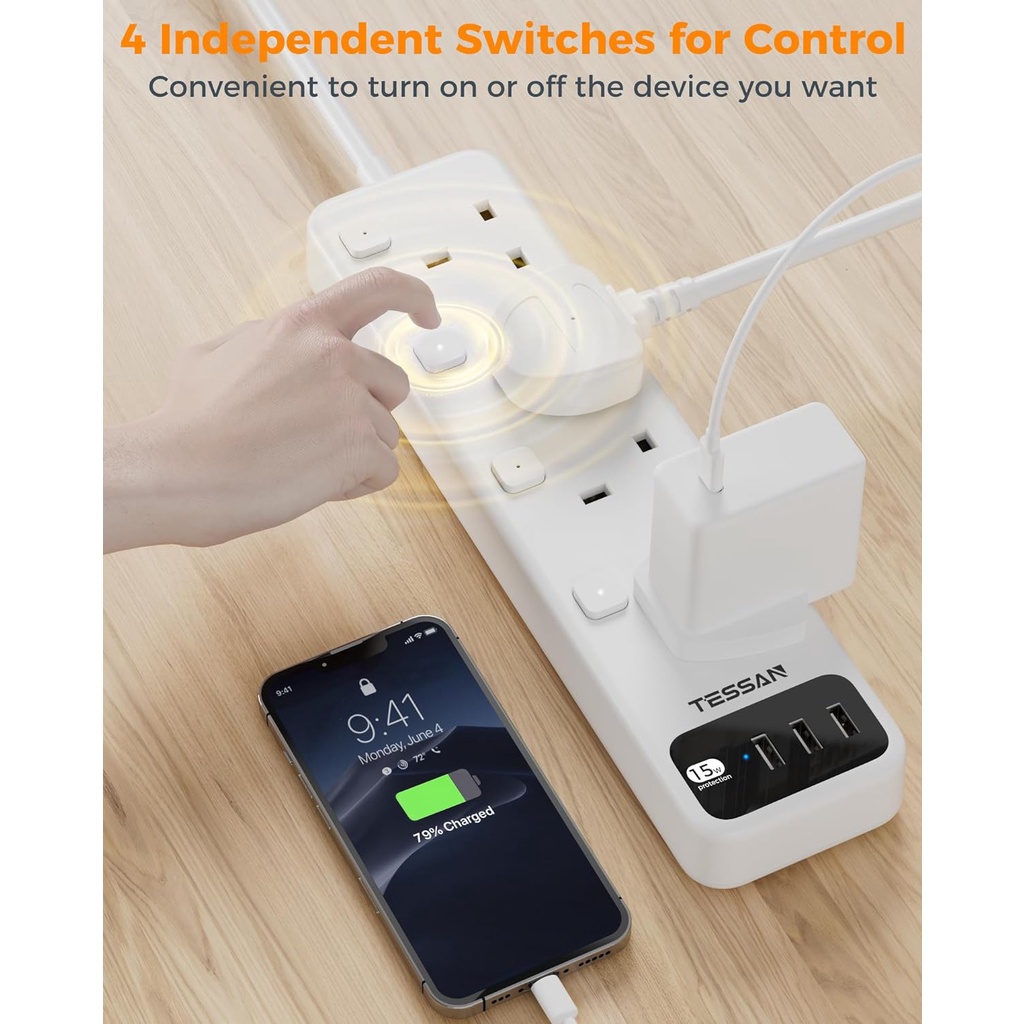 TESSAN Multi Plug Tower Extension Socket with USB+Type C,Surge Protector Power Socket Safety Mark