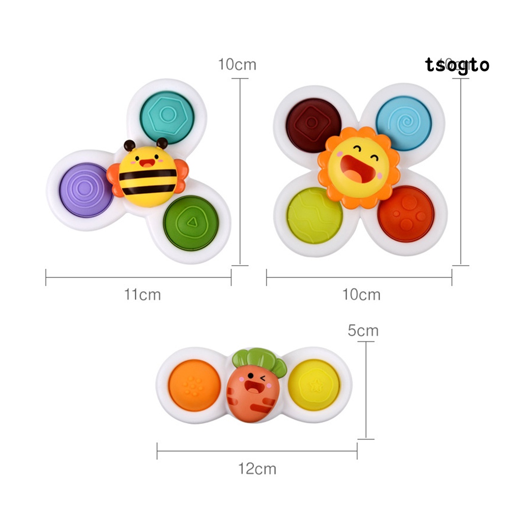 [Ts] 3Pcs Baby Educational Toys Soft Bobble Design Tactile Stimulation Safe Spin Sucker Spinning Top Toys for Baby Supplies