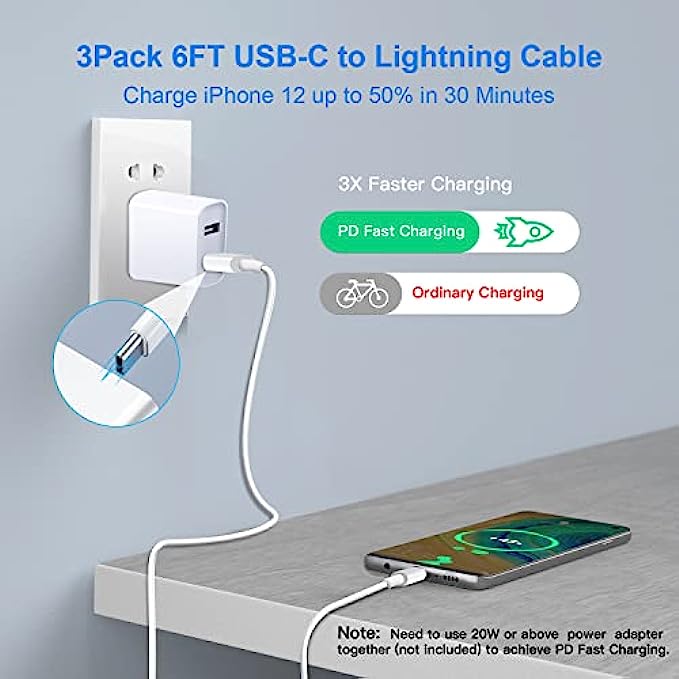 • 【Power Delivery Fast Charging & SYNC】:Mitesbony USB-C to lightning cable supports high-speed power delivery fast Charging, can charge the iPhone 12 up to 50% in 30mins. The type c to lightning cables also support data transfer rate up to 480Mbps,which can easily transfers music, photos and files between iPhone and laptop or desktop computer in seconds.(Note:You need to use 20W or above USB-C Power Adapter to achieve Power Delivery Fast Charging.)