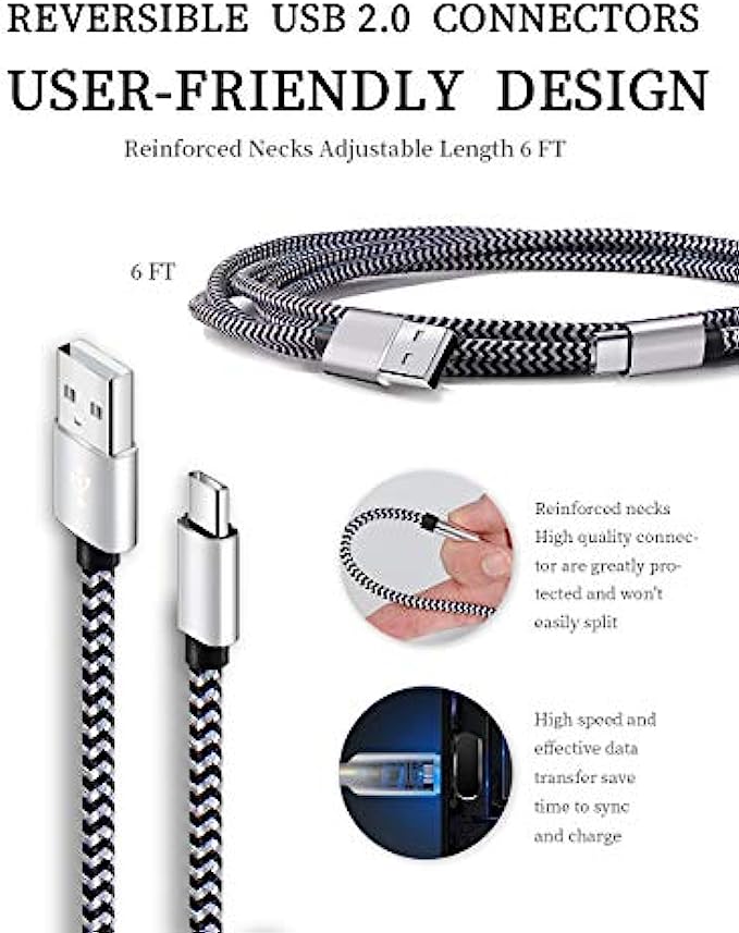【Super Durable】Strong fiber, the most flexible, powerful and durable material, makes tensile force increased by 200%. Can bear 8000+ bending test. Premium Aluminum housing makes the cable more durable,and the Nylon Braided C-type cable increases the durability without tangle.