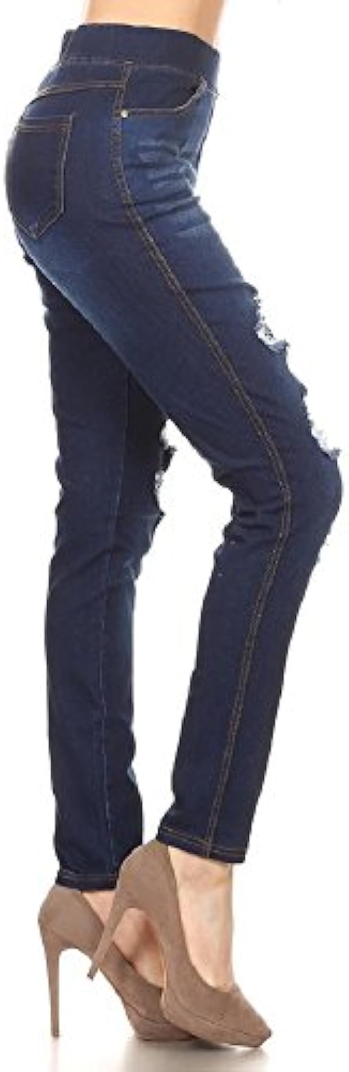 76% Cotton, 22% Polyester, 2% Spandex Imported Pull On closure Machine Wash Soft and stretchy, comfortable cotton blend denim fabric,adapts well to the body Easy pull on closure with elastic waistband;Full length and semi high waisted as they reach the natural waistline Breathable touch giving you all day comfort and custom fit without the risk of sagging, bagging