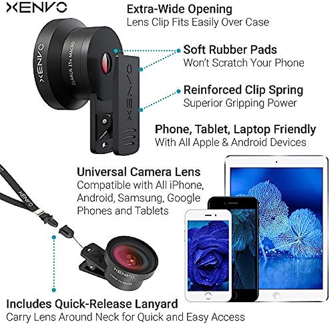• ✔ QUICK-RELEASE LANYARD AND TRAVEL CASE - TRANSPORT AND PROTECT YOUR LENS KIT: Perfect for taking your Xenvo lenses with you on the fly. The travel case stores and protects all lens kit components snugly and safely while the quick-release lanyard is the perfect way to carry your lenses on your next outing. Just drape the lanyard and lens around your neck. The quick-release lanyard head makes it a cinch to access your Xenvo lenses in a flash so you never miss another photo moment.