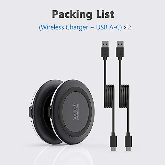 ▶[TWO PACK DESIGN]: Comes with two wireless charging pads in the package. You can use one to charge your AirPods and the other one to charge your phone, or use one at home and one at office. Great combination for a family or one with two mobile phones and AirPods. ▶[3 CHARGING MODES AVAILABLE FOR DIFFERENT PHONES]: 7.5W charging mode is compatible with iPhone 13/13 Pro/13 Mini/13 Pro Max/SE 2022/12/SE 2020/11/XS/XR/X/8;10W charging mode is compatible with S22/S22 Ultra/S21/S20/Note 10/10 Plus/S10/S10 Plus/S10E/Note9/S9/S8 and so on;5W charging mode works on any wireless-charging-enabled devices like Google Pixel 3/3XL/4XL and other wireless-charging-enabled phones. Note:Adapter is Not Included,QC 2.0/3.0 adapter will be highly recommended. ▶[UNIQUE DESIGN PERFECT FOR AIRPODS]: It is compatible with AirPods (with wireless charging case) and AirPods Pro. The size of the AirPods fits perfectly into the charging area of the wireless charging pad, perfect wireless charging companion for AirPods, easier to find the “Sweet Spot”. Also, both top and bottom have a rubber ring, will keep your AirPods in place and prevent slippage ▶[SAFER AND EASIER TO USE]: Exclusive Multifunctional Intelligent Protect Technology provides temperature control, surge protection, short-circuit prevention. Besides that, this wireless chargers is made of ABS Material which is fire-resistant, and has a UL Certificate, you can purchase it at assurance. Double guarantee and dual safety provide you safety experience.To get better experience, we would like you to take off the phone case and use the adapters recommended (NOT INCLUDED) ▶[PACKAGE AND SERVICE]: You will get 2 x wireless charging pad, 2 x 3. 3ft USB Type C Cable, 1x User Manual and reliable 12-hour response service. At Yootech, zero risk purchase is for every customer's smiles.